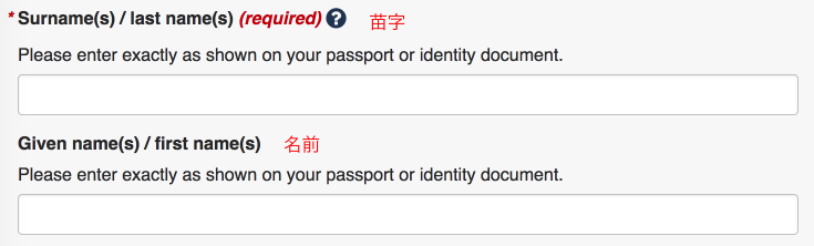 Surname=Last Name(苗字)のことです。 例:山田