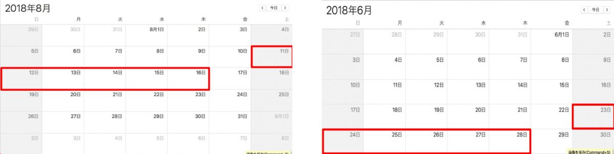 この記事では、日本人が長期休暇をとりやすい8/11-16のお盆シーズンと、比較的安い6/23-28の時期で計算してみたいと思います。